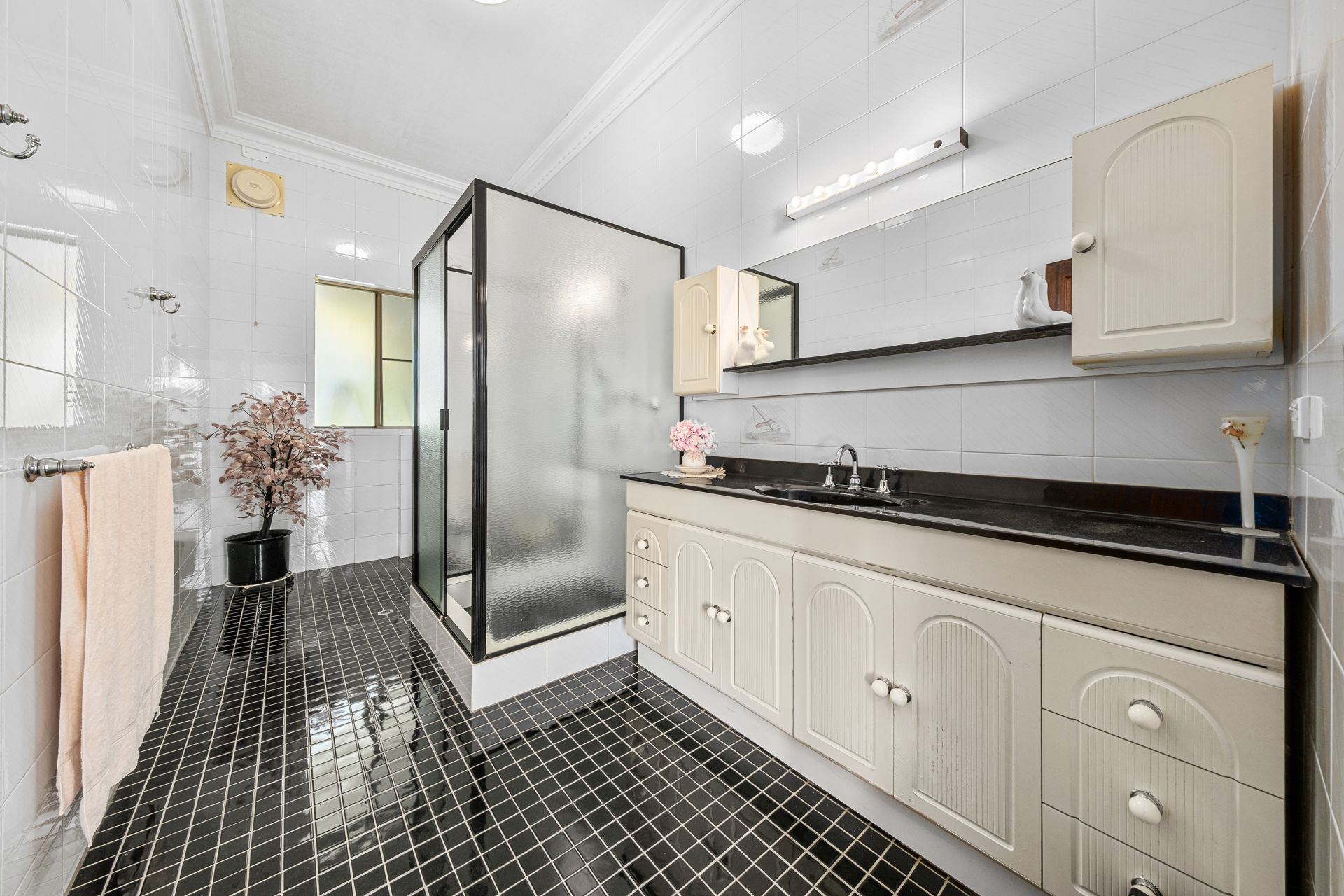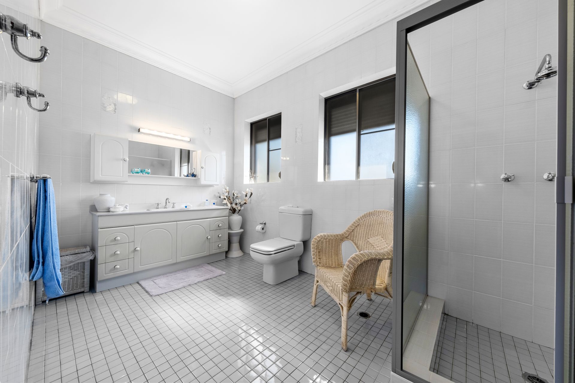 The upper level of the house is dedicated to rest and relaxation, featuring five generously sized bedrooms. The master bedroom is a true retreat, complete with a walk-in robe and an ensuite that features floor-to-ceiling tiling for a sleek, practical look.