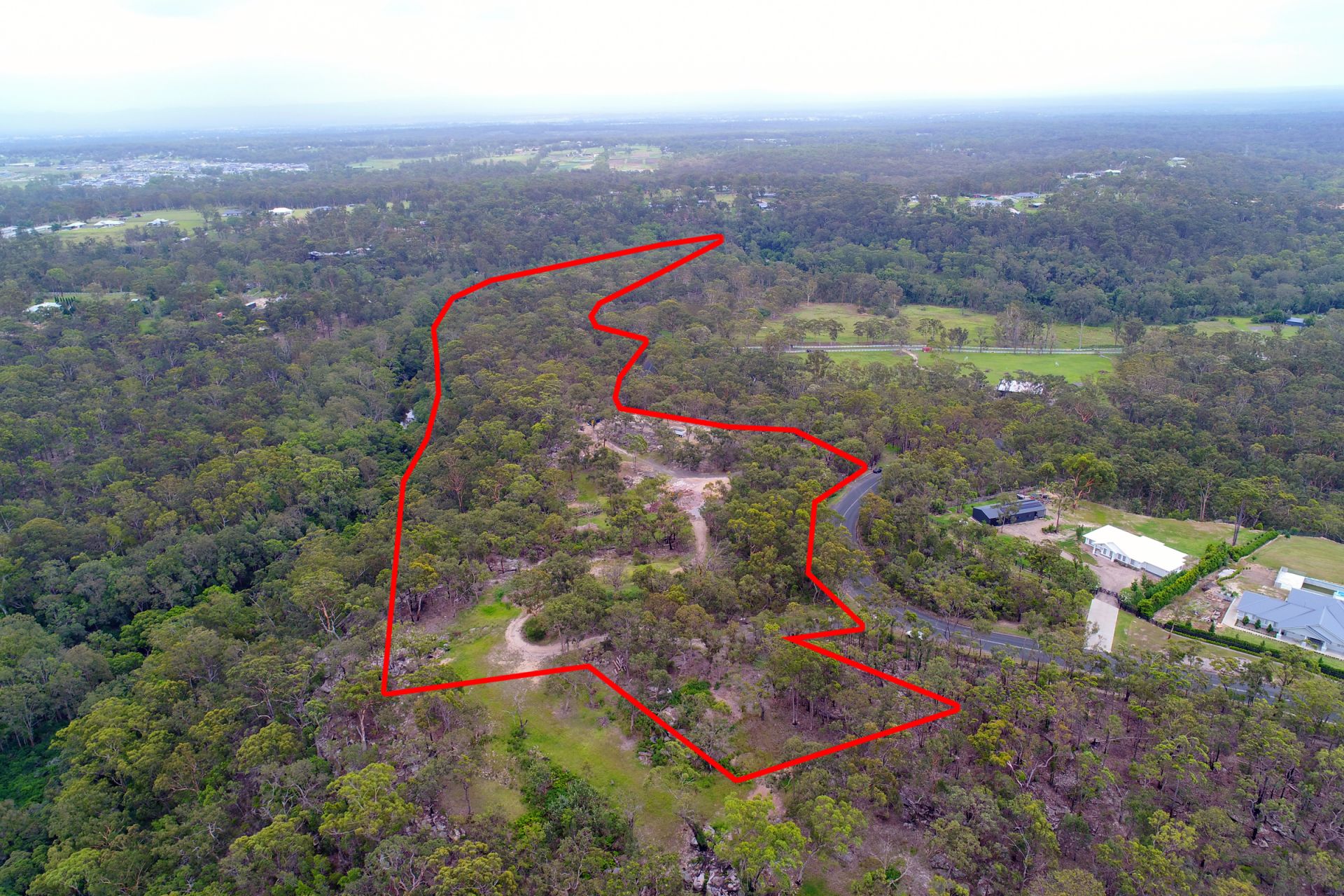 The property features an indicative plan for a six-block cluster subdivision, with individual block sizes ranging from 5,760 square meters to 1 hectare. This plan offers a rare chance to create a thoughtfully designed community that maximizes the potential of this prime acreage (STCA). Land that allows cluster subdivisions (community title) within the Hills Council must be a minimum of 25 acres (this land is currently not approved for this).