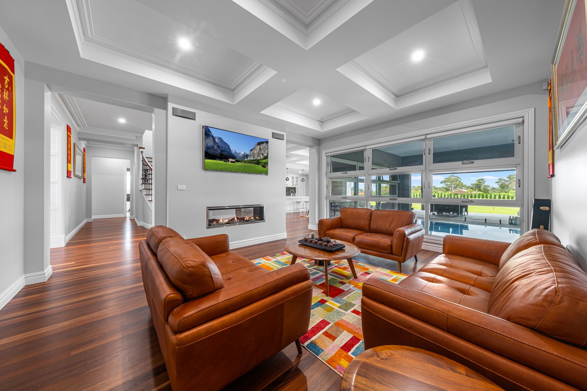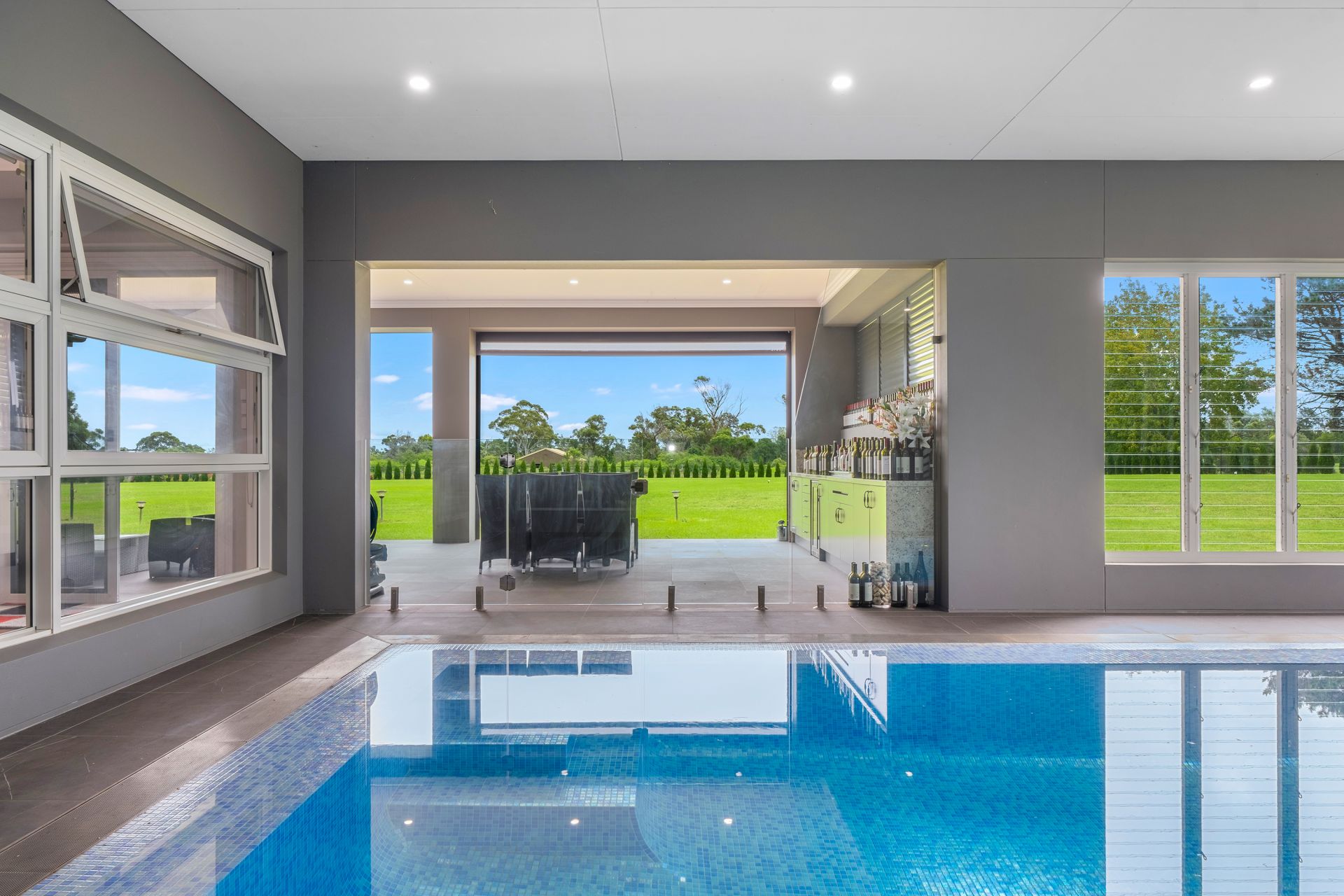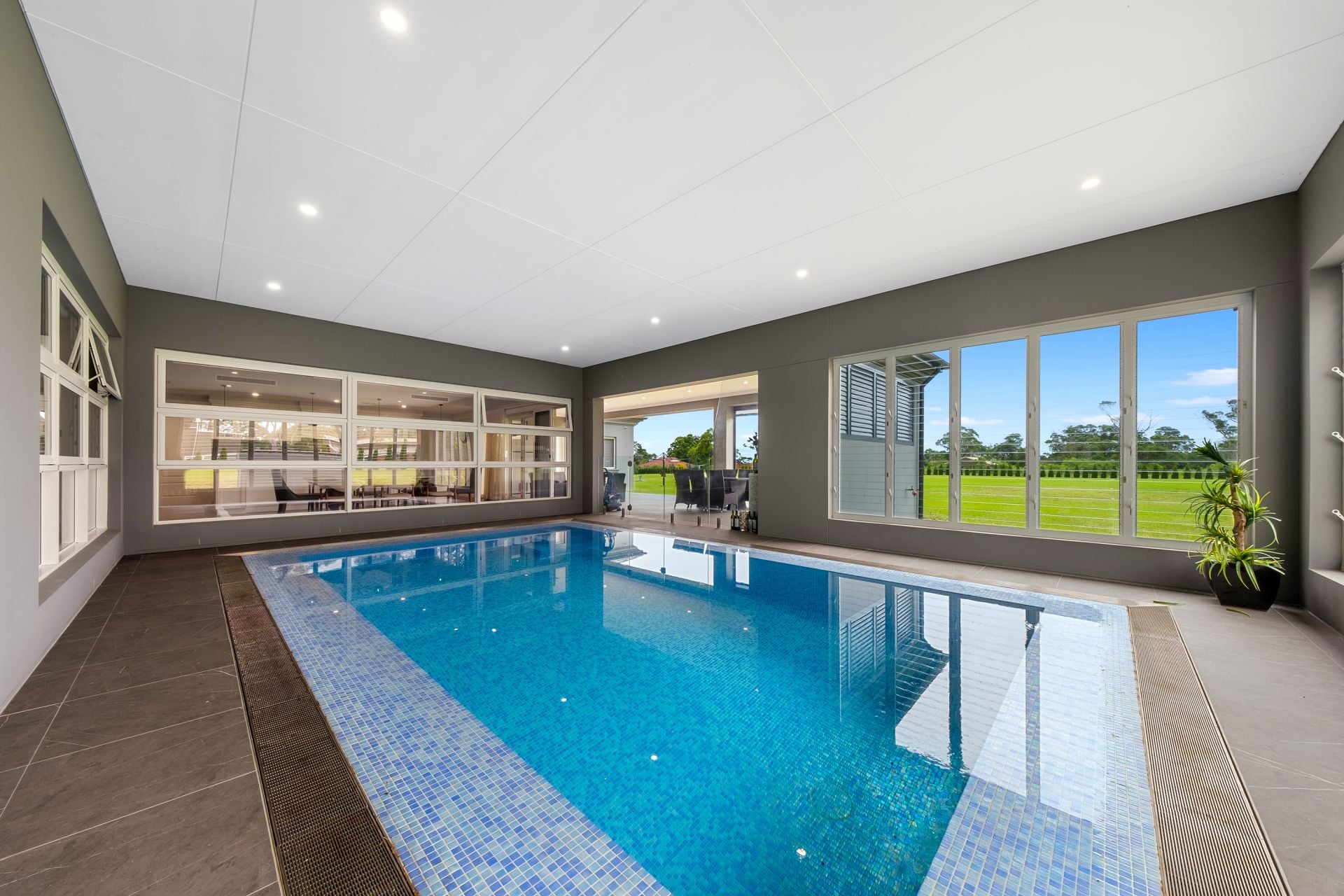 Catering to a range of lifestyle needs, the home also includes a state-of-the-art home theatre, a large office for those working remotely, and a dedicated hobby room for creative pursuits. An impressive indoor pool adds a resort-style element to the property, ensuring year-round enjoyment. The indoor swimming pool can be viewed from living zones within the home, adding to the opulence of this estate. Completing the home is a spacious laundry with ample storage, adding to the practical and functional design.