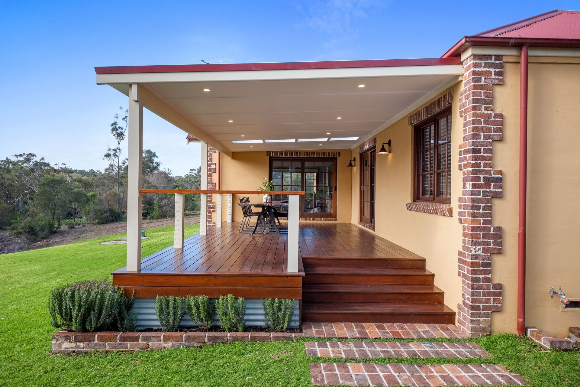 In winter enjoy the warmth and ambience of the slow combustion fireplace and in summer the shade of verandahs and ducted air-conditioning. The home is constructed with a steel frame and boasts hardwood floors, new carpet, timber-framed windows, and an internal feature brick wall.
