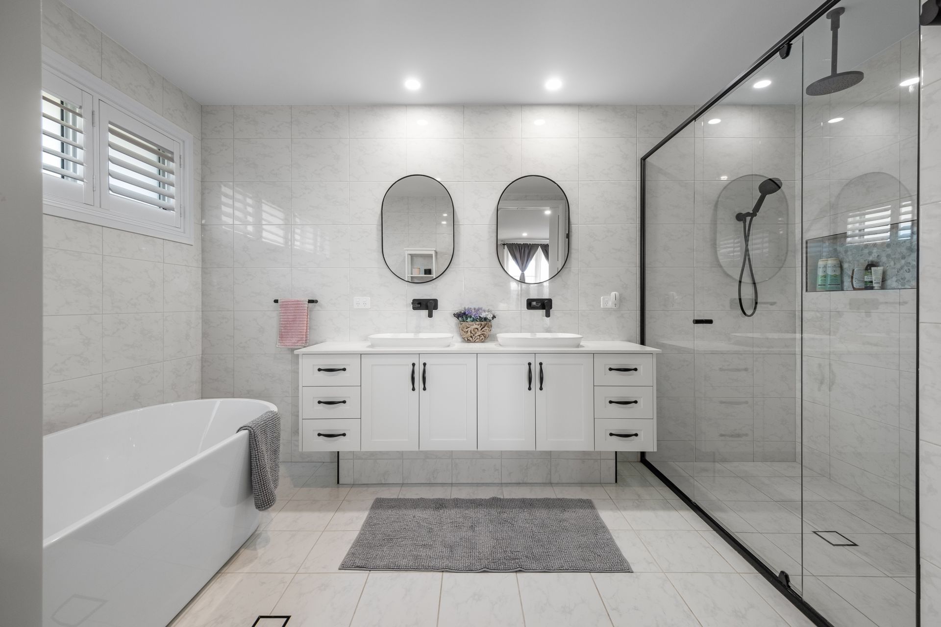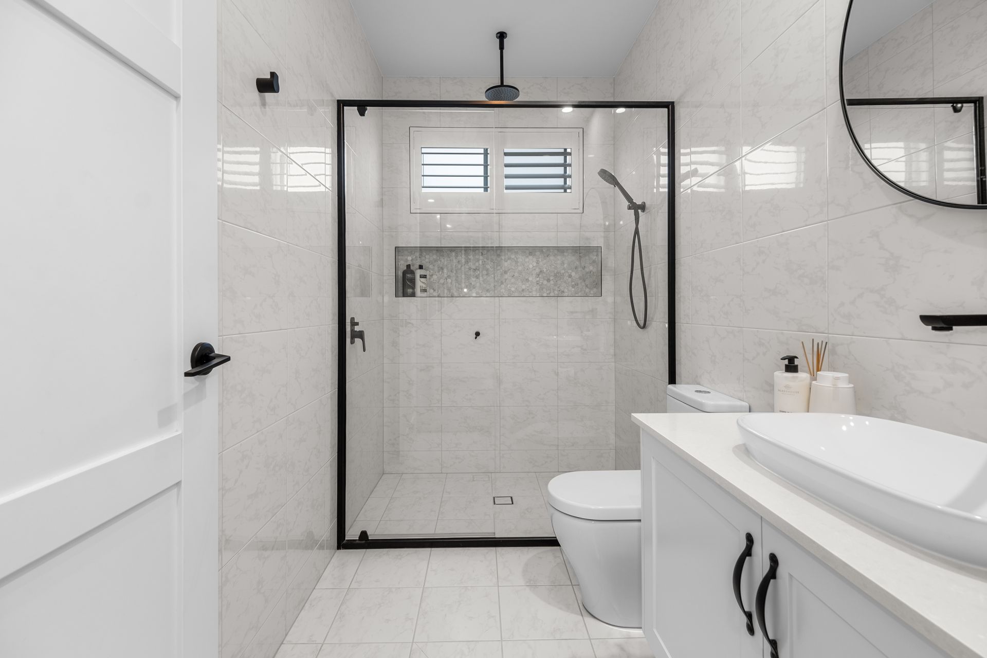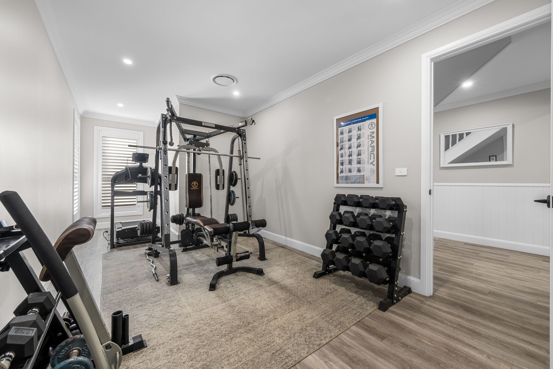 Accommodation is generous and flexible, offering four oversized bedrooms plus a versatile fifth room, perfect as a home gym, guest room or second office. The luxurious master suite features a walk-in robe, a stunning ensuite with floor-to-ceiling tiles and a freestanding bath, plus its own private balcony. Bedroom 2 includes a fitted walk-in robe, Bedroom 3 offers a built-in robe, and Bedroom 4-located on the ground floor-features its own built-in robe, making it ideal for guests or multigenerational living. Additional highlights include a designer main bathroom upstairs, guest bathroom downstairs, an upstairs lounge/kids' retreat, and a dedicated home office with built-in desk and shelving. Even the laundry has been cleverly designed, featuring a laundry chute from the upper level for added convenience.