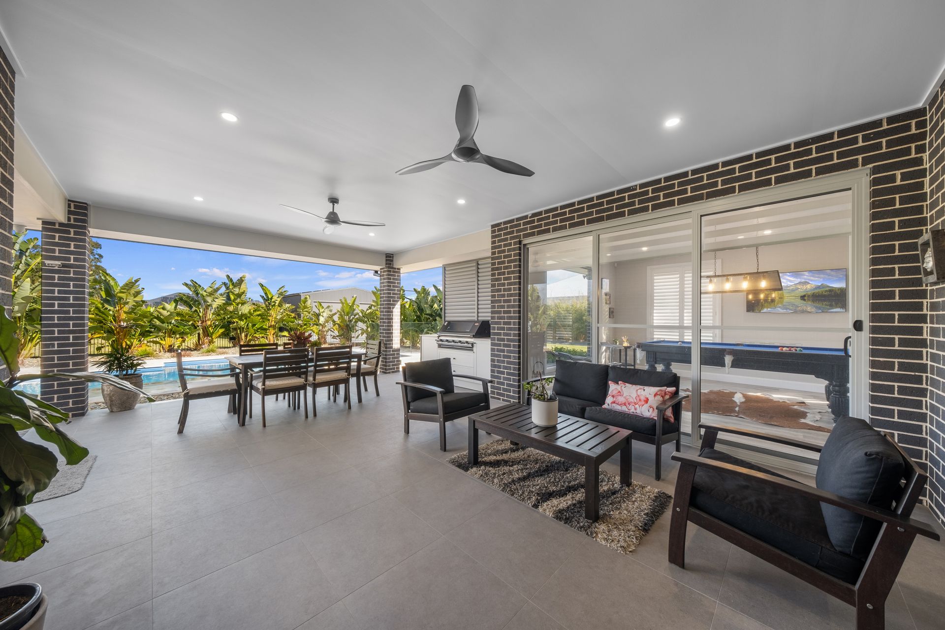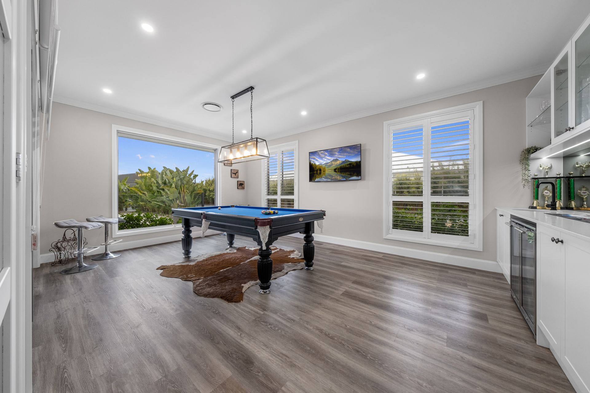 At the heart of the home is a sun-drenched, open-plan kitchen, living, and dining area, anchored by a cosy gas fireplaceand enhanced by electric blinds and plantation shutters throughout. The gourmet kitchen is a true centrepiece, boasting 40mm stone benchtops, a butler's pantry, and premium Bosch appliances-including a built-in microwave, coffee machine, and dual 600mm ovens-perfect for the home chef. The effortless indoor-outdoor flow makes entertaining a breeze, with a wet bar and games room inside, and a tiled alfresco area outside featuring ceiling fans, a built-in outdoor kitchen, and a heated pool surrounded by travertine tiling and frameless glass fencing.