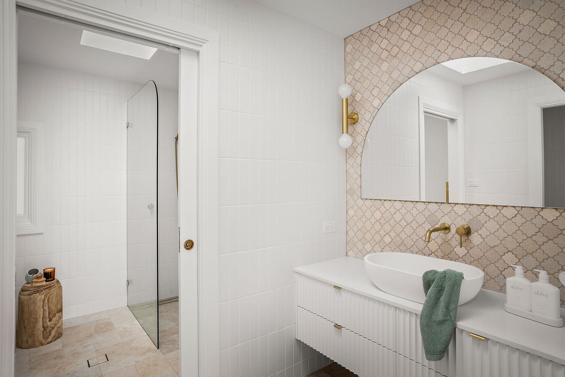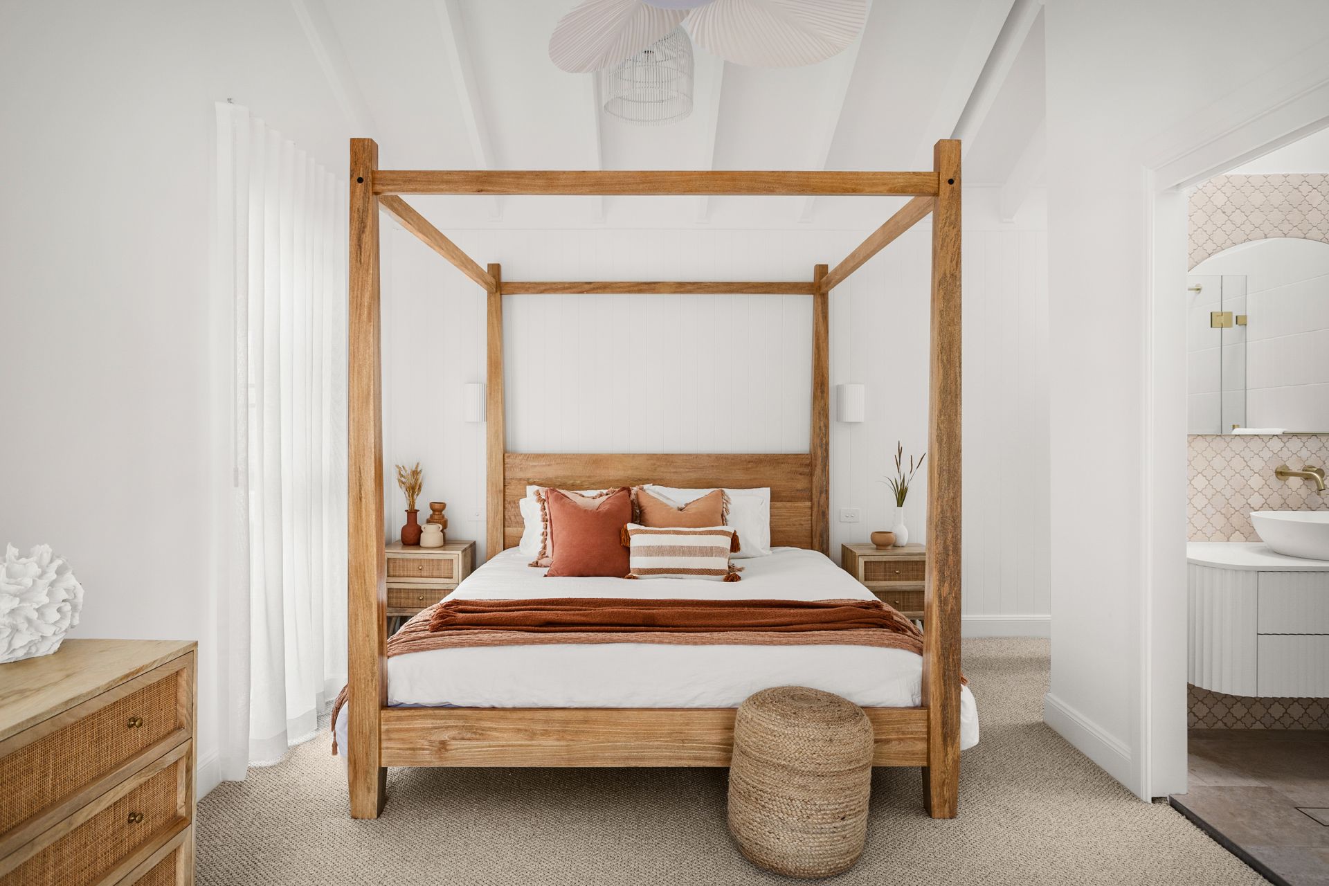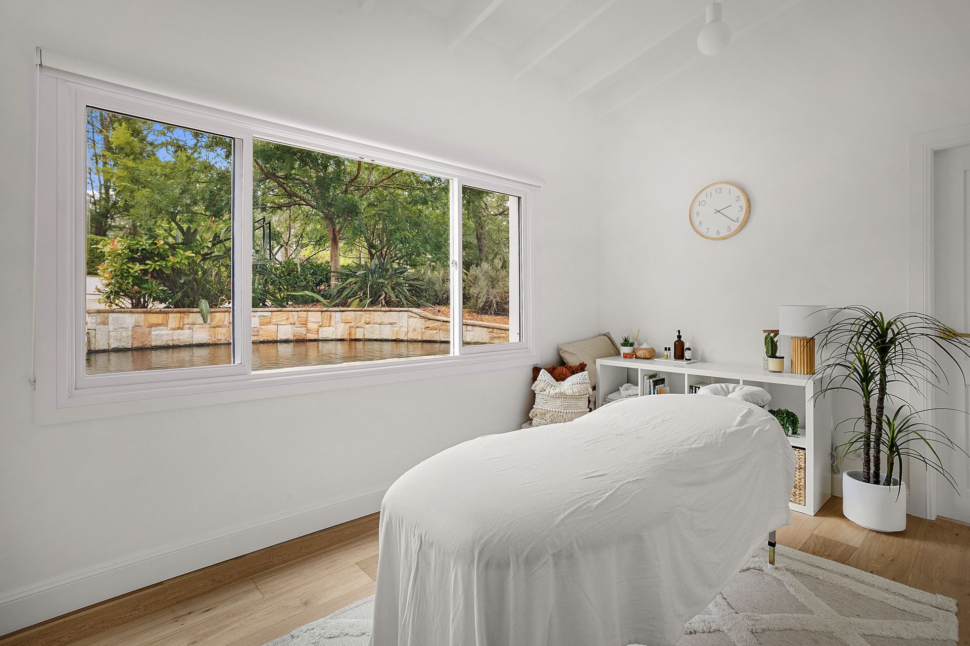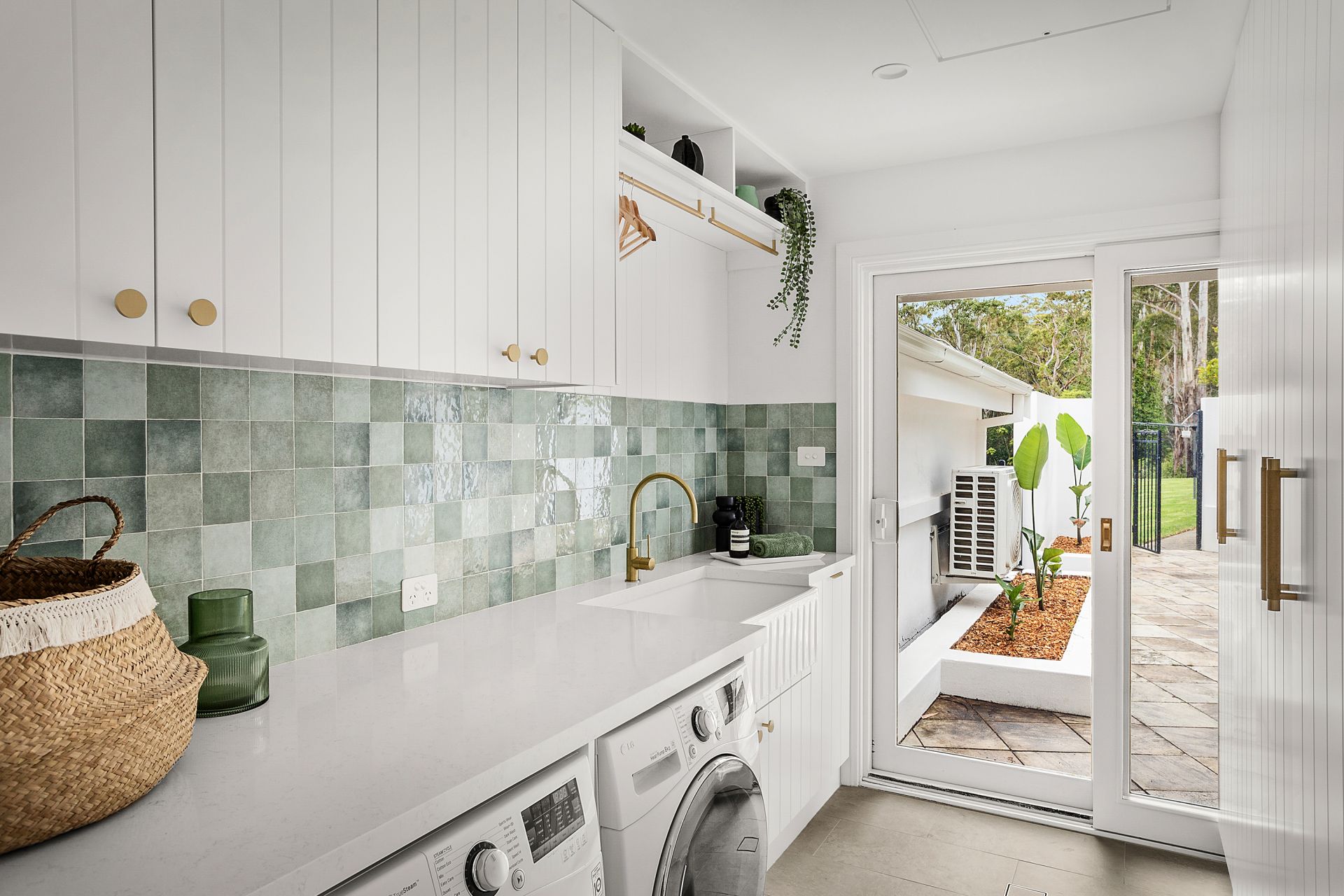 The single-level residence has been fully renovated and finished with a rendered exterior, colorbond roof, and timeless neutral interiors. A feature bridge pathway over a fish pond leads to the entry foyer, where vaulted and feature ceilings create a sense of light and space. The versatile floor plan includes six bedrooms or five plus a home office, with the master suite offering a walk-in robe, private deck access, and a stylish ensuite. Each additional bedroom includes built-ins and ceiling fans, while the three-way family bathroom caters easily to family living. A fitted out laundry with external access adds convenience.