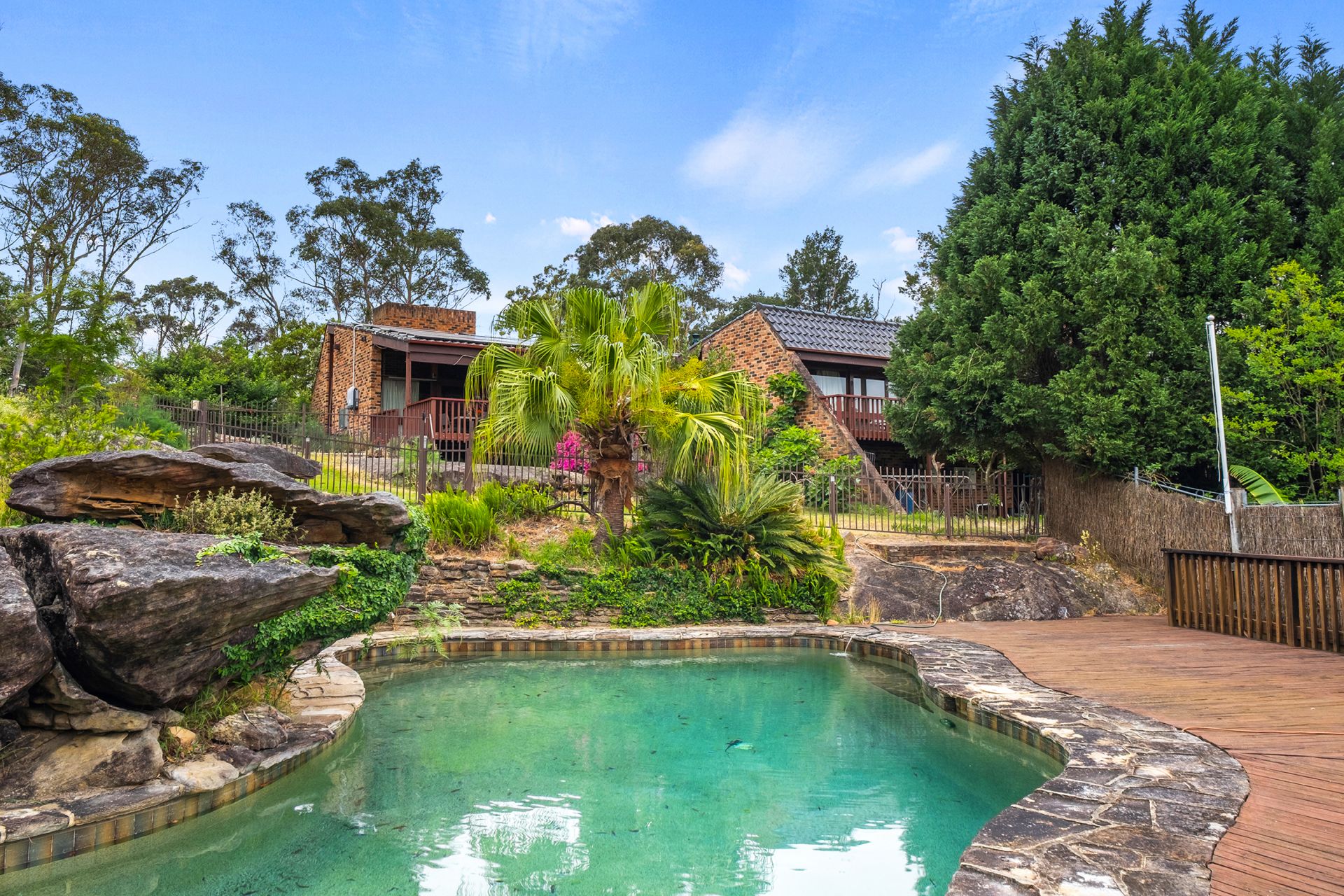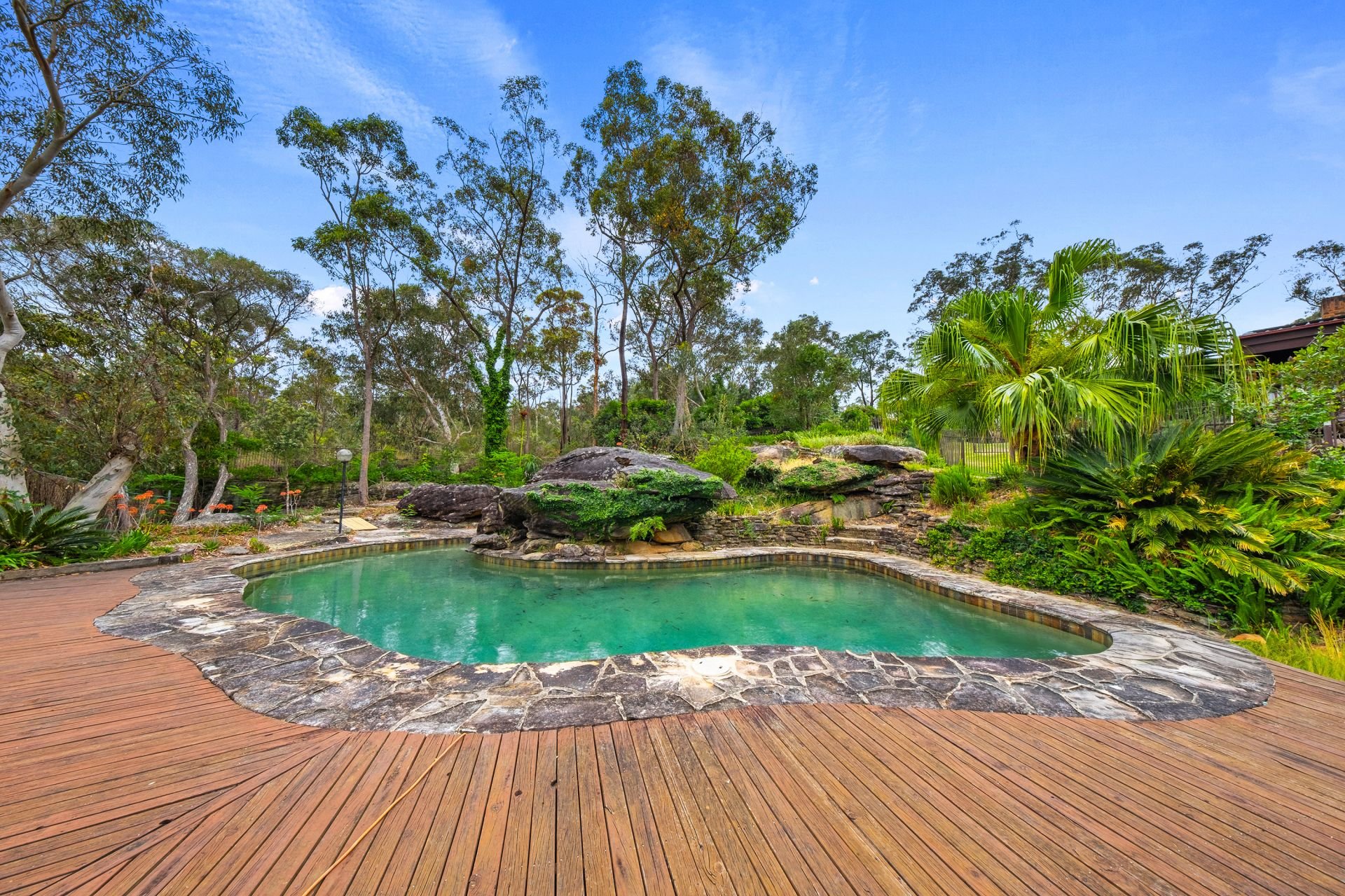 - Inground pool with natural rock features