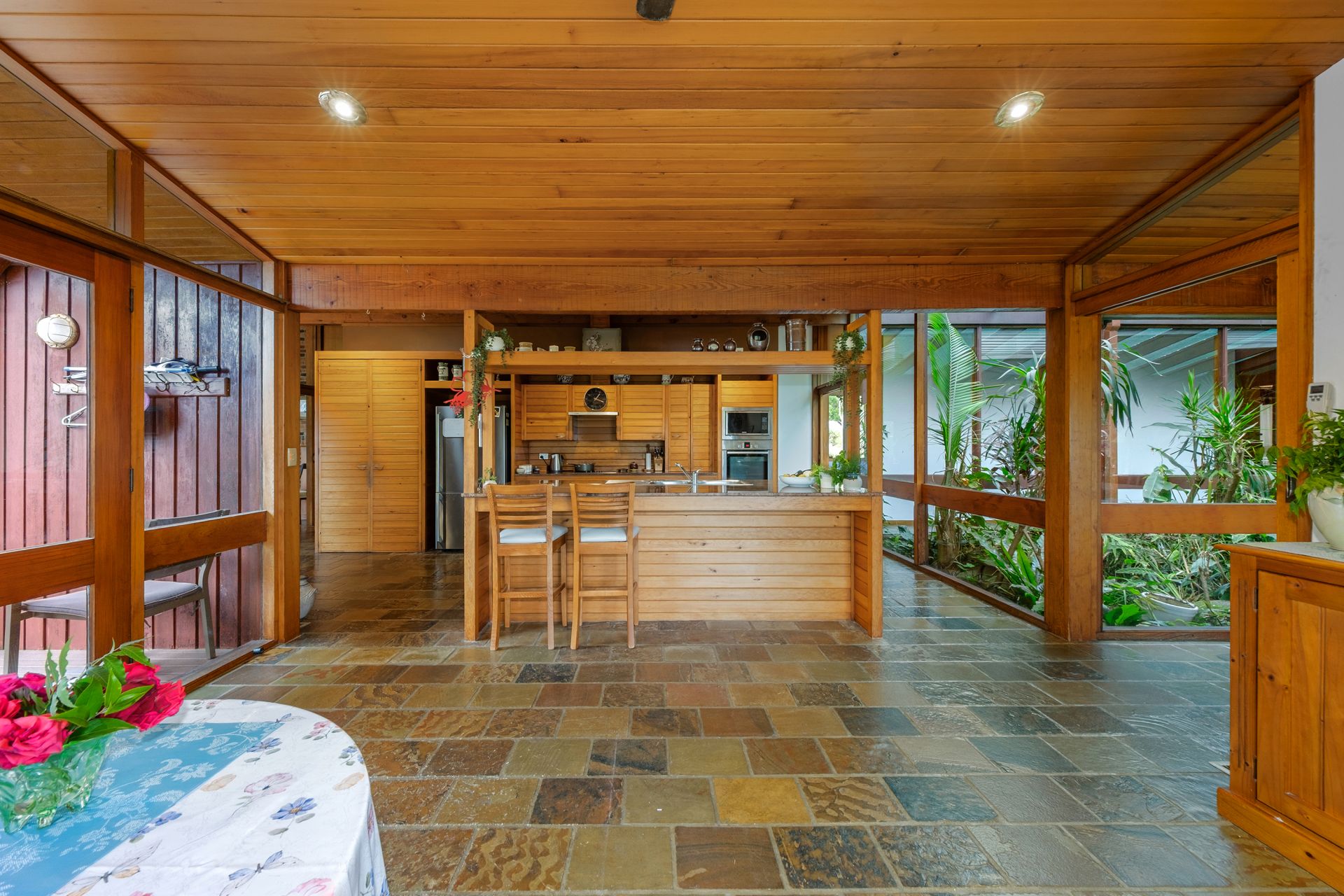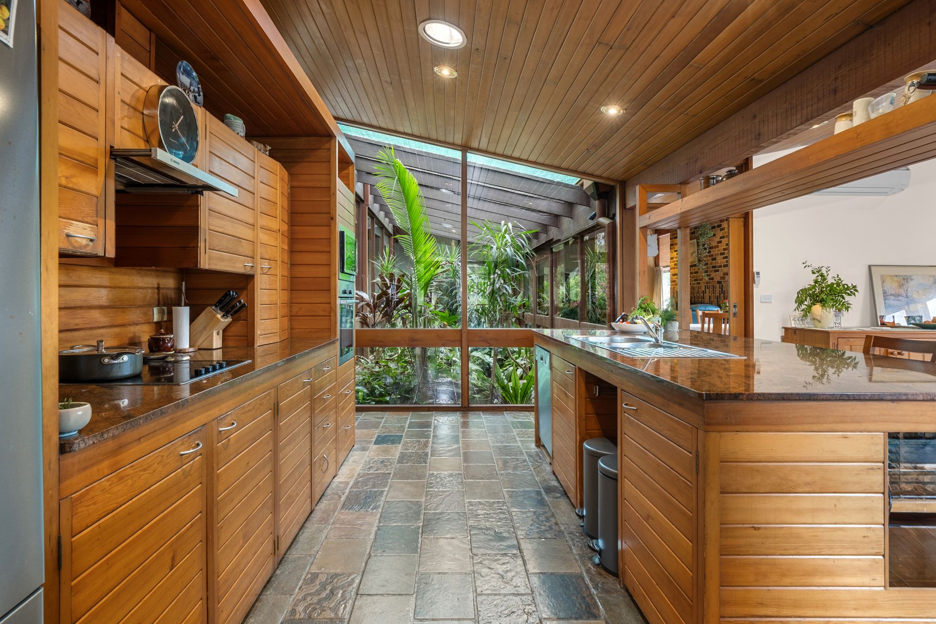 - Open-plan timber kitchen and dining