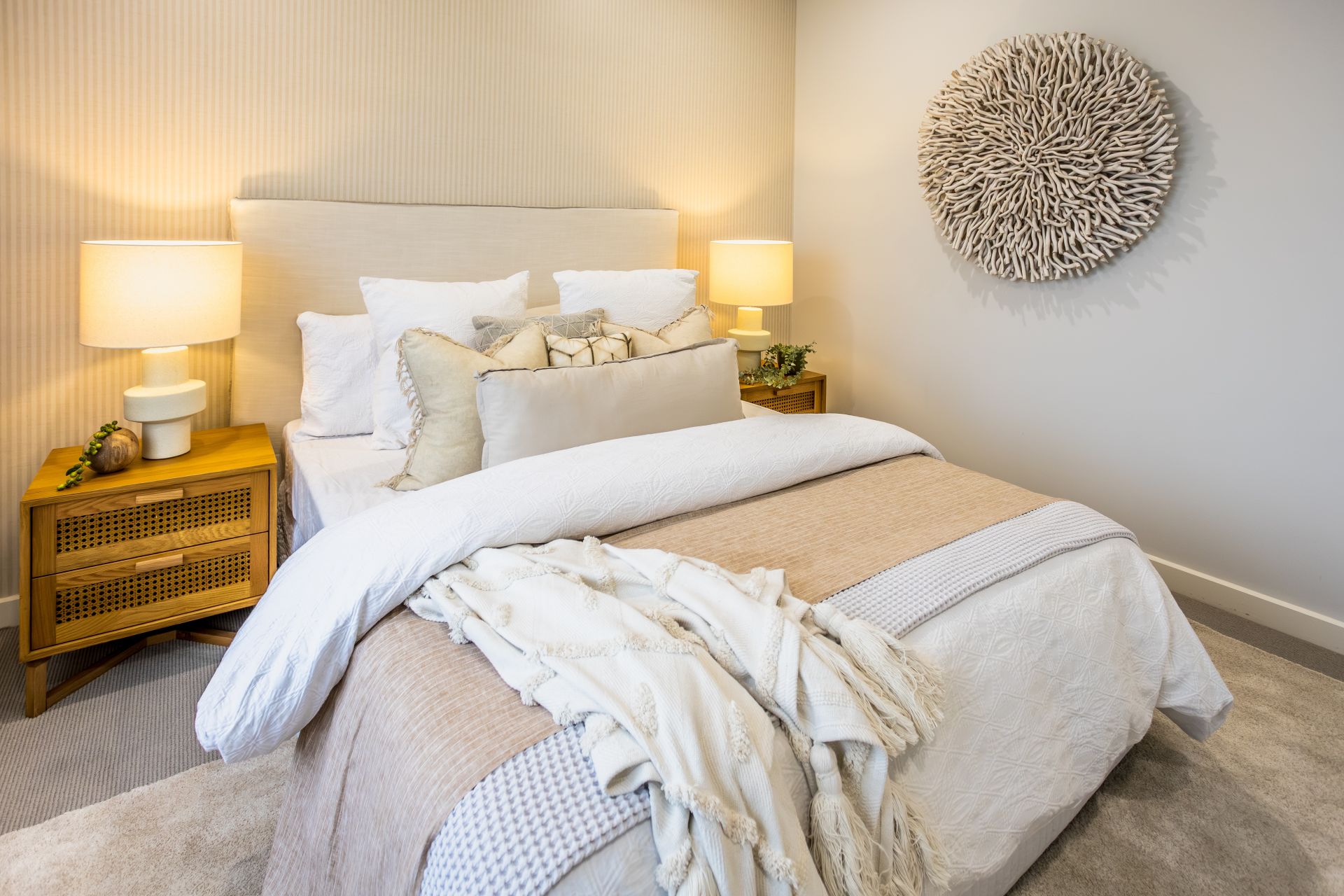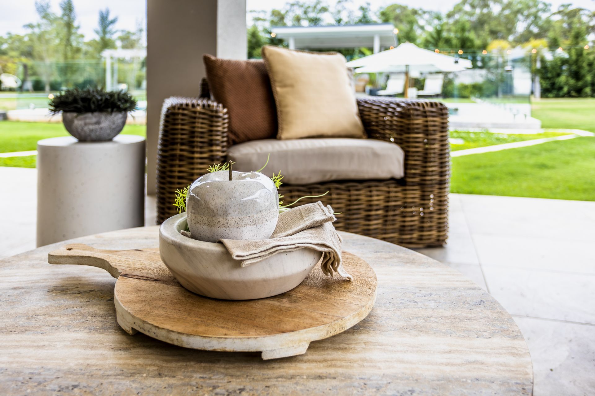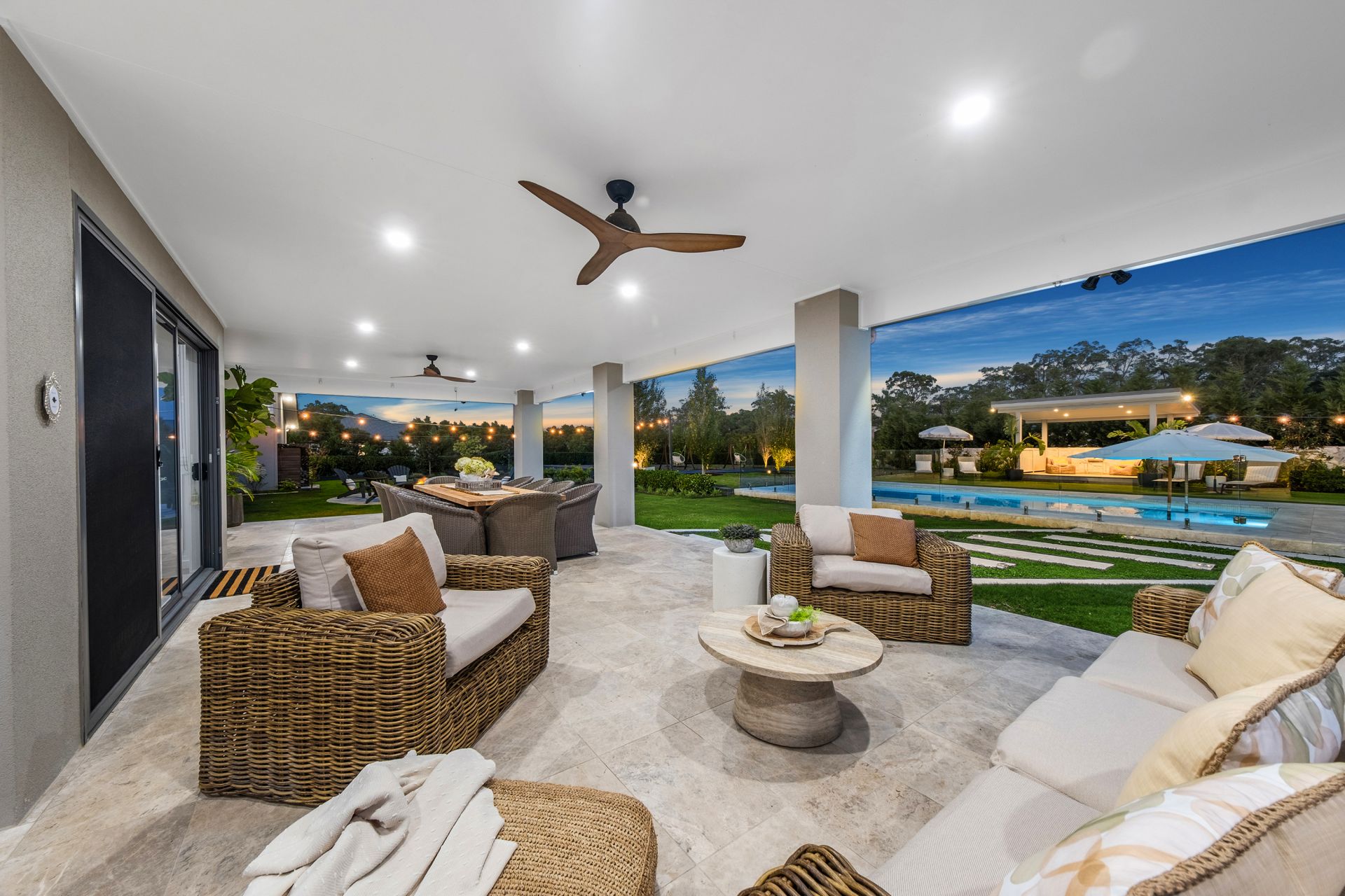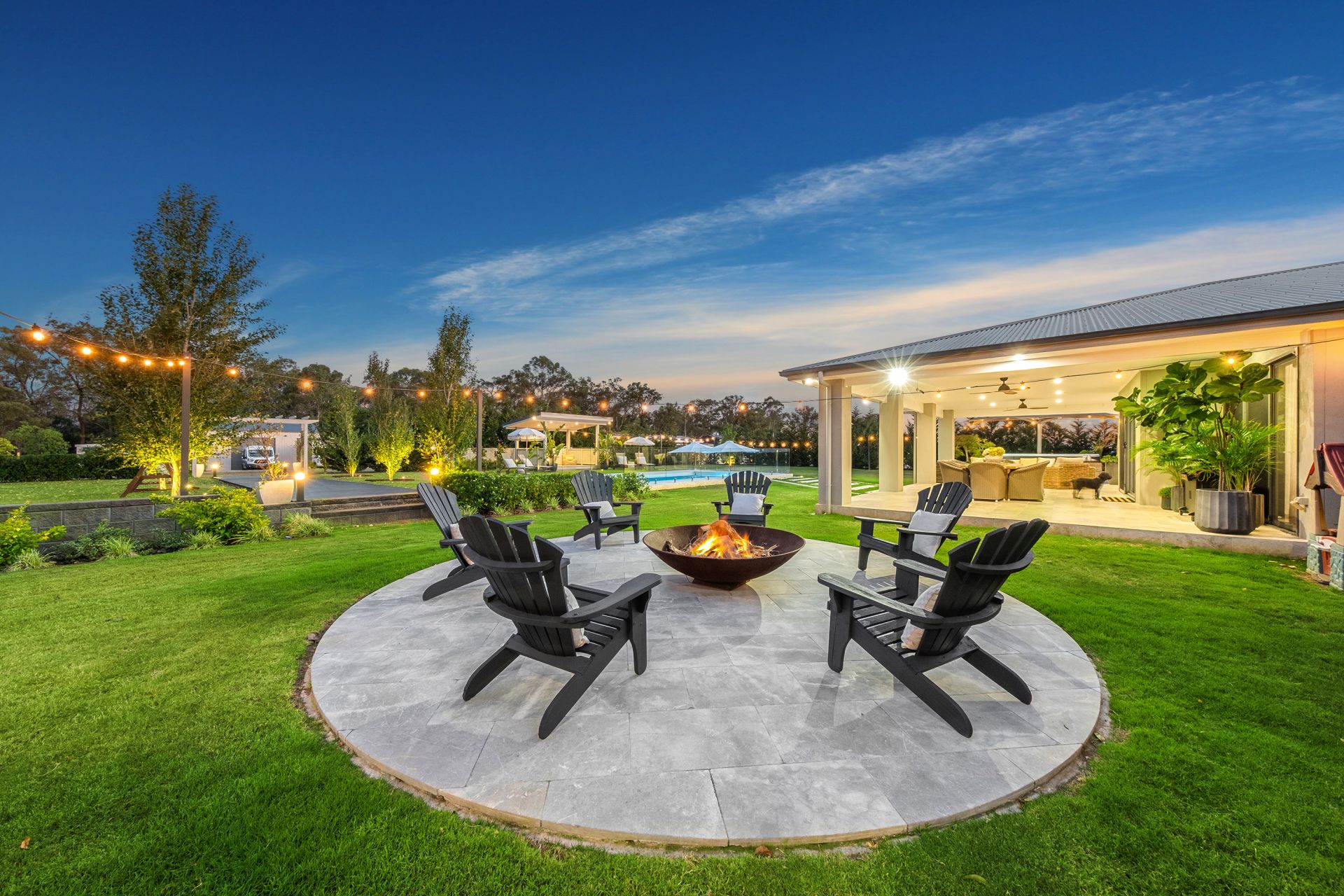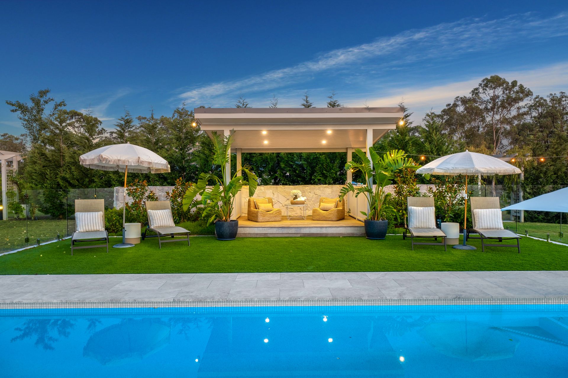 Step outside to a resort-style oasis crafted for year-round enjoyment. Entertain in style under the covered alfresco with travertine tiles, overlooking the brand-new Image Pools saltwater heated pool, complete with swim ledge, built-in umbrellas, and robotic cleaning system. Complementing the pool is a 12-person heated swim spa, illuminated cyclone shade umbrellas, a poolside cabana, and a bespoke fire pit area-ideal for both relaxation and social gatherings. The landscaped grounds are fully irrigated via a 120,000L underground water tank, ensuring low-maintenance yet immaculate acreage living.