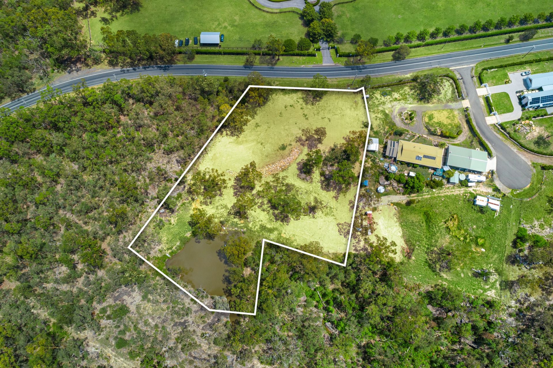 Discover the perfect opportunity to create your dream lifestyle on this expansive 2.47-acre block, at 277 Pitt Town Road, Kenthurst. With generous 56.4m street frontage and a gentle slope from front to rear, this property offers an excellent building platform for a home and shed, while leaving ample space for a pool or tennis court. Approximately 2 acres of fully fenced usable land ensuring privacy and security, complemented by a dam and the natural beauty of the surrounding bushland. Stunning bushland vistas to enjoy and be at one with the Kenthurst landscape.